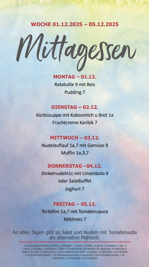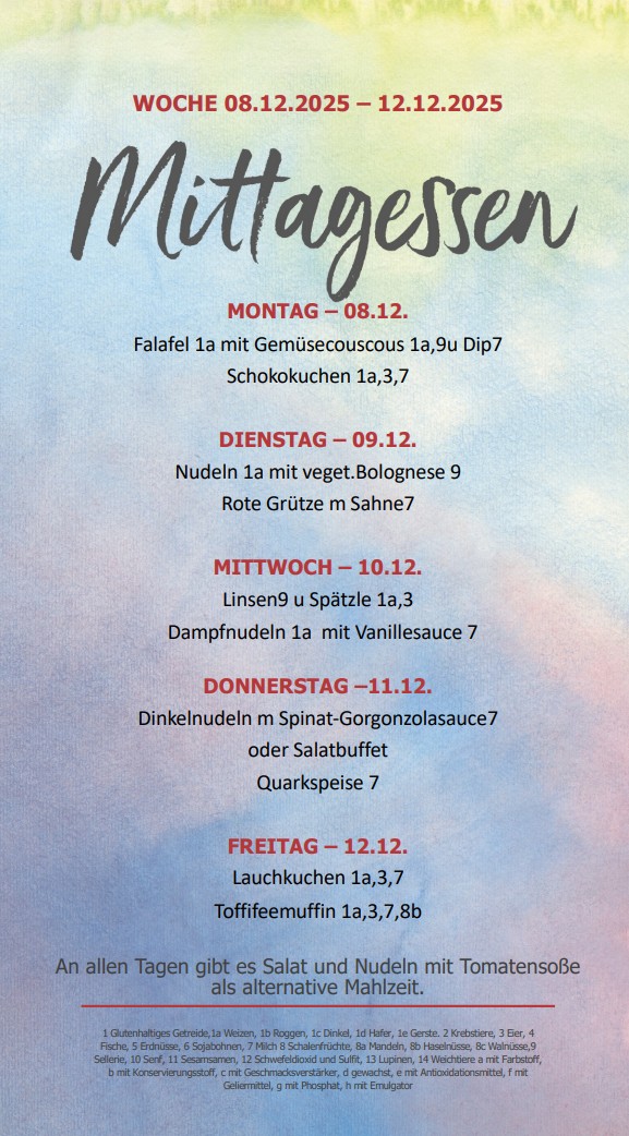 Die Mensa ist schultäglich von 9.30 Uhr bis 14 Uhr geöffnet.